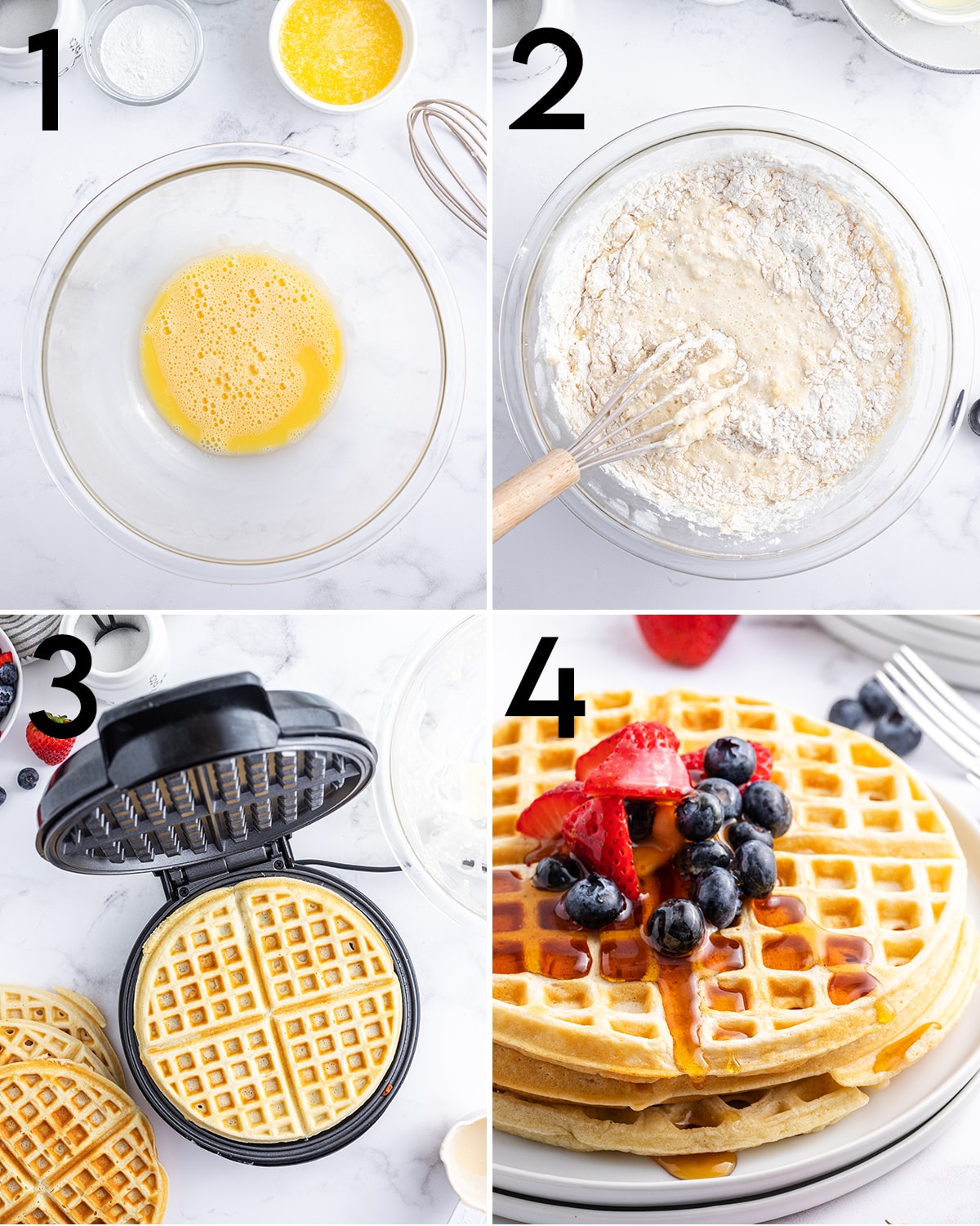 4. Pour and Cook: Pour the egg mixture onto the hot waffle iron, filling it about two-thirds of the way to avoid overflow. Close the lid.